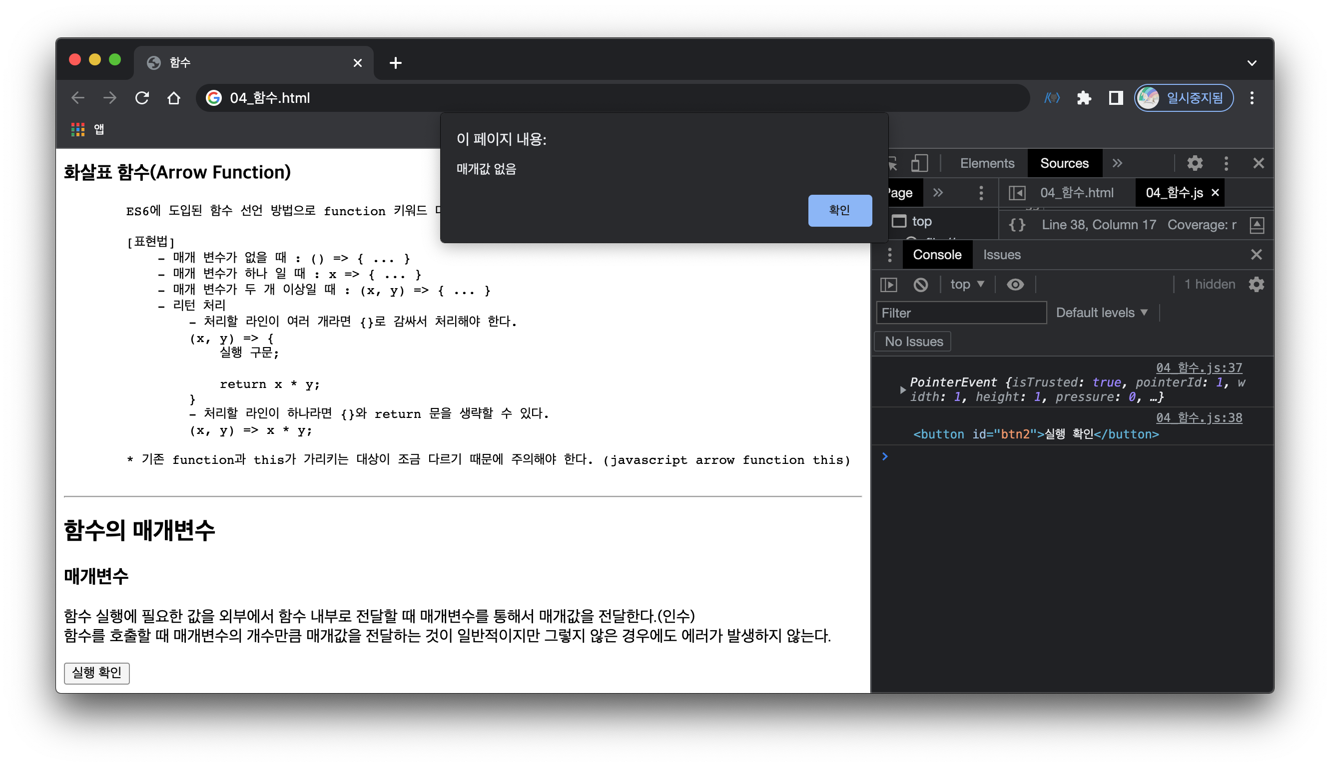 초과된 매개값이나 가변적으로 매개값을 함수 내부로 전달할 때는 arguments 객체를 사용한다. <br>