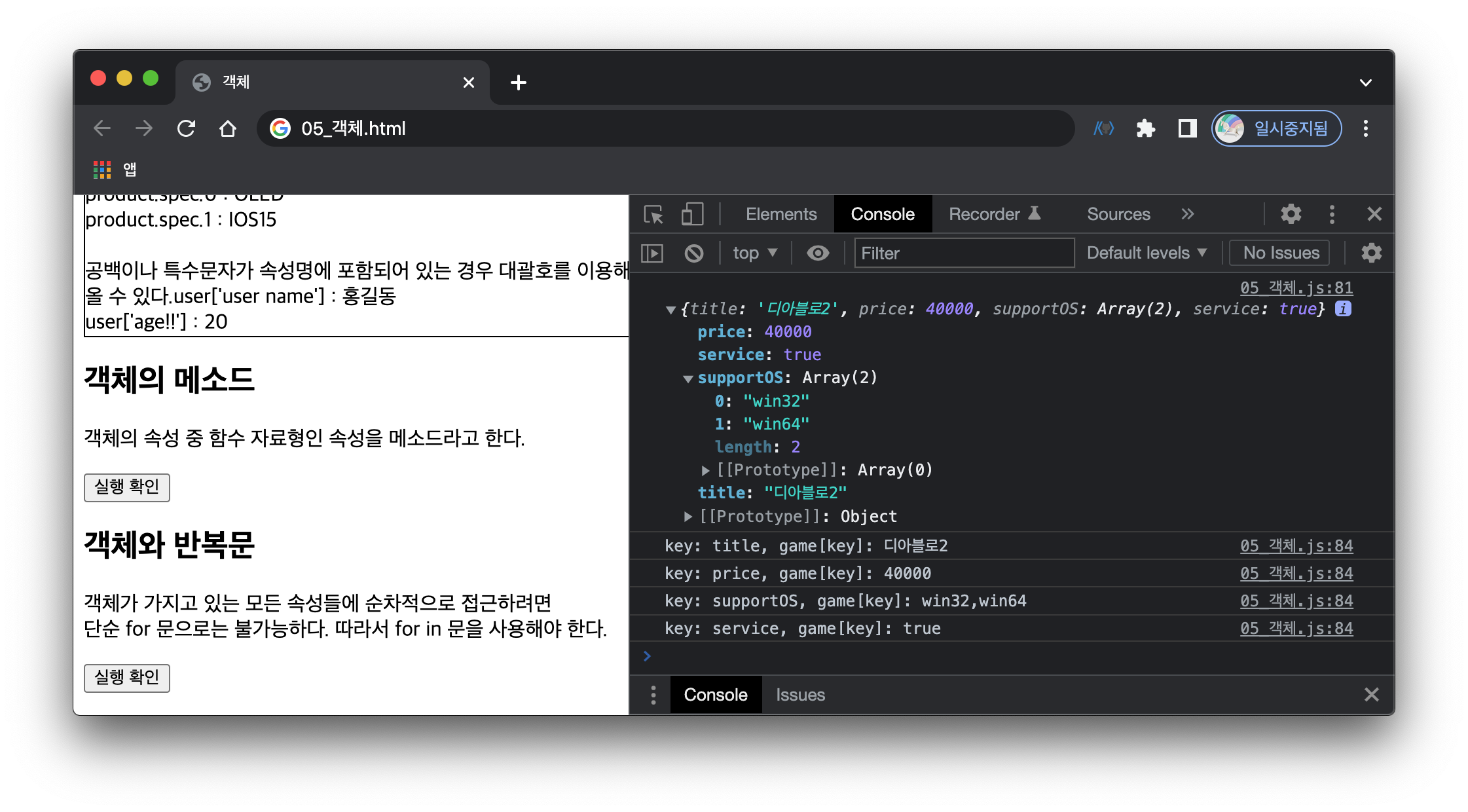 area.innerHTML += '객체명.속성명으로 접근하는 방법<br>';