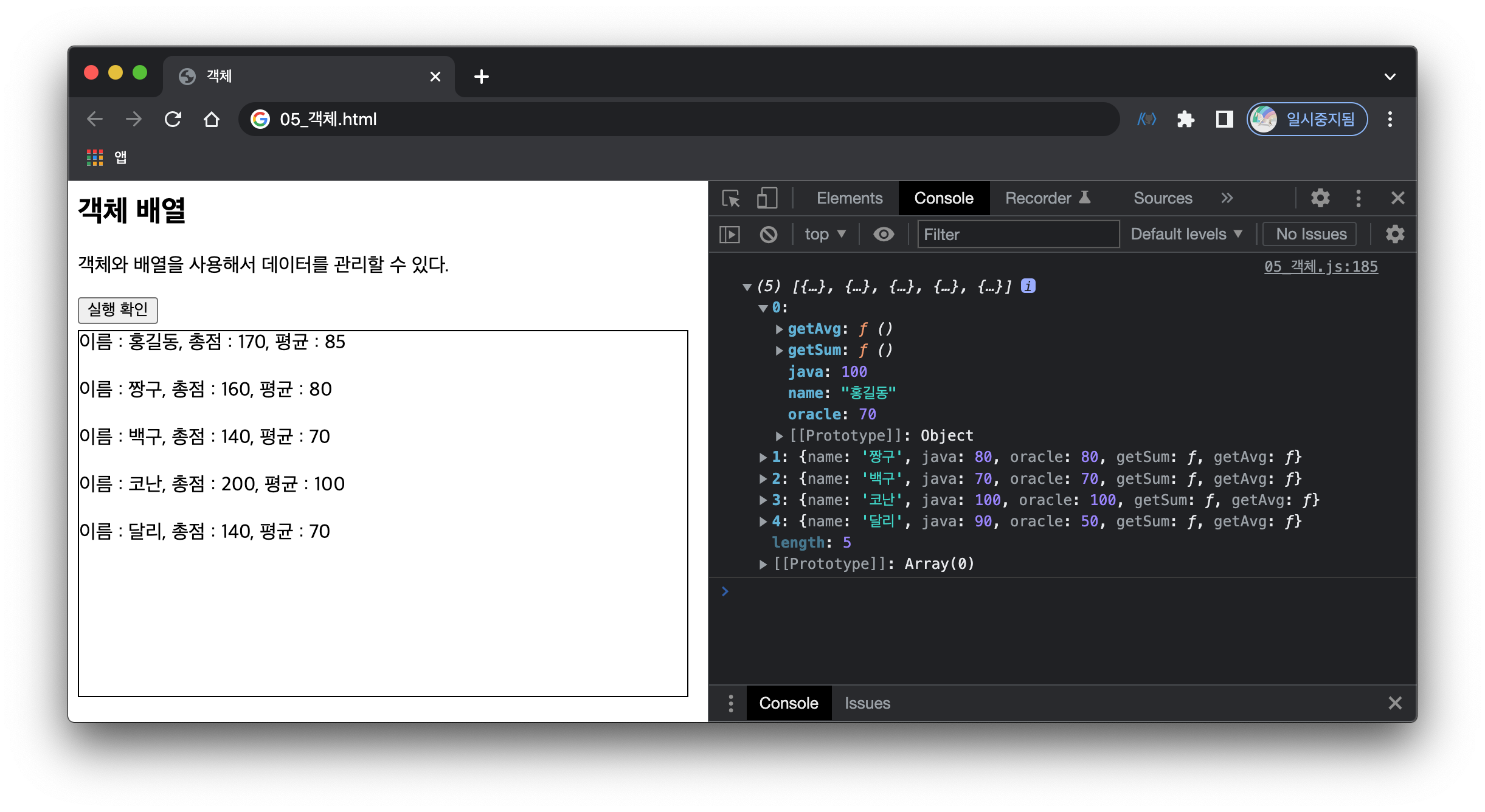 area.innerHTML += `이름 : ${name}, 총점 : ${getSum()}, 평균 : ${getAvg()} <br><br>`;