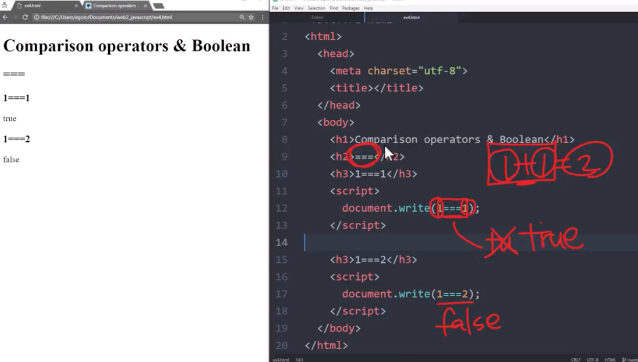 왼쪽의 값과 오른쪽 값이 같냐 묻는 연산자