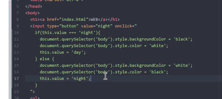 documnet.querySelector('#night_day') 를 -> this 로 바꿔줌으로써 훨씬 간결하고 깔끔한 태그로 정리 되었다.