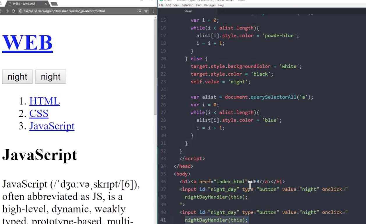 onclick="nightDayHandler(this);" this는 그대로 유지해준다.