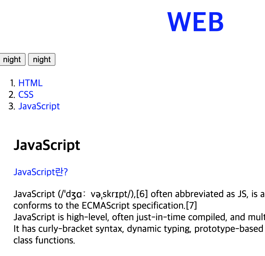 그래야만 day, night 버튼이 정상작동하는 것을 확인할 수 있음.