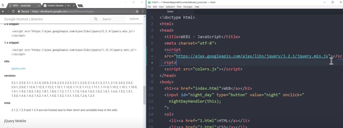 <script src="colors.js"></script>전에 jQuery 코드를 복사해서 붙여넣어준다.