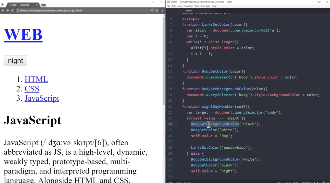 [JavaScript] 생활코딩 WEB2 - JavaScript 29~35 본문
