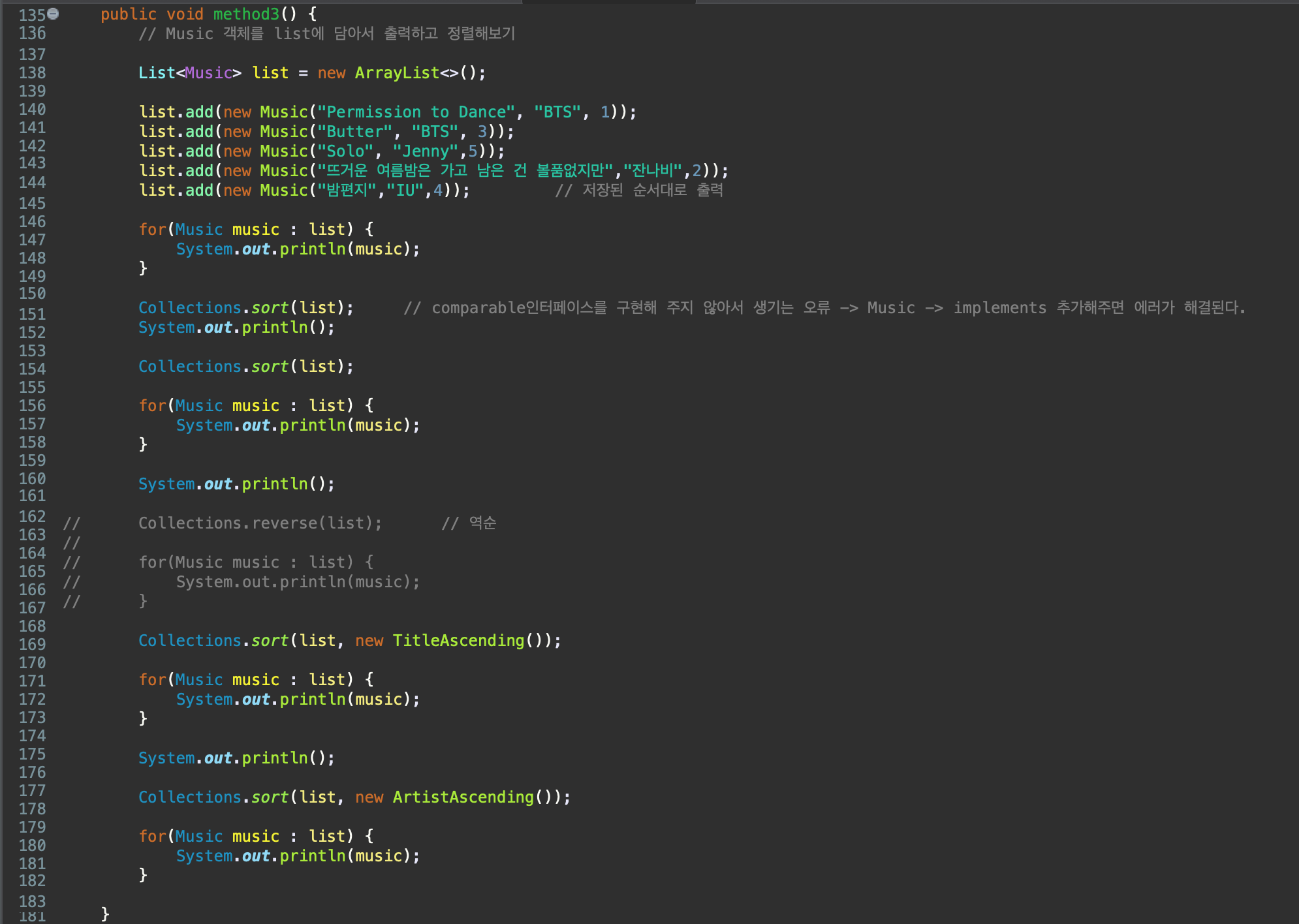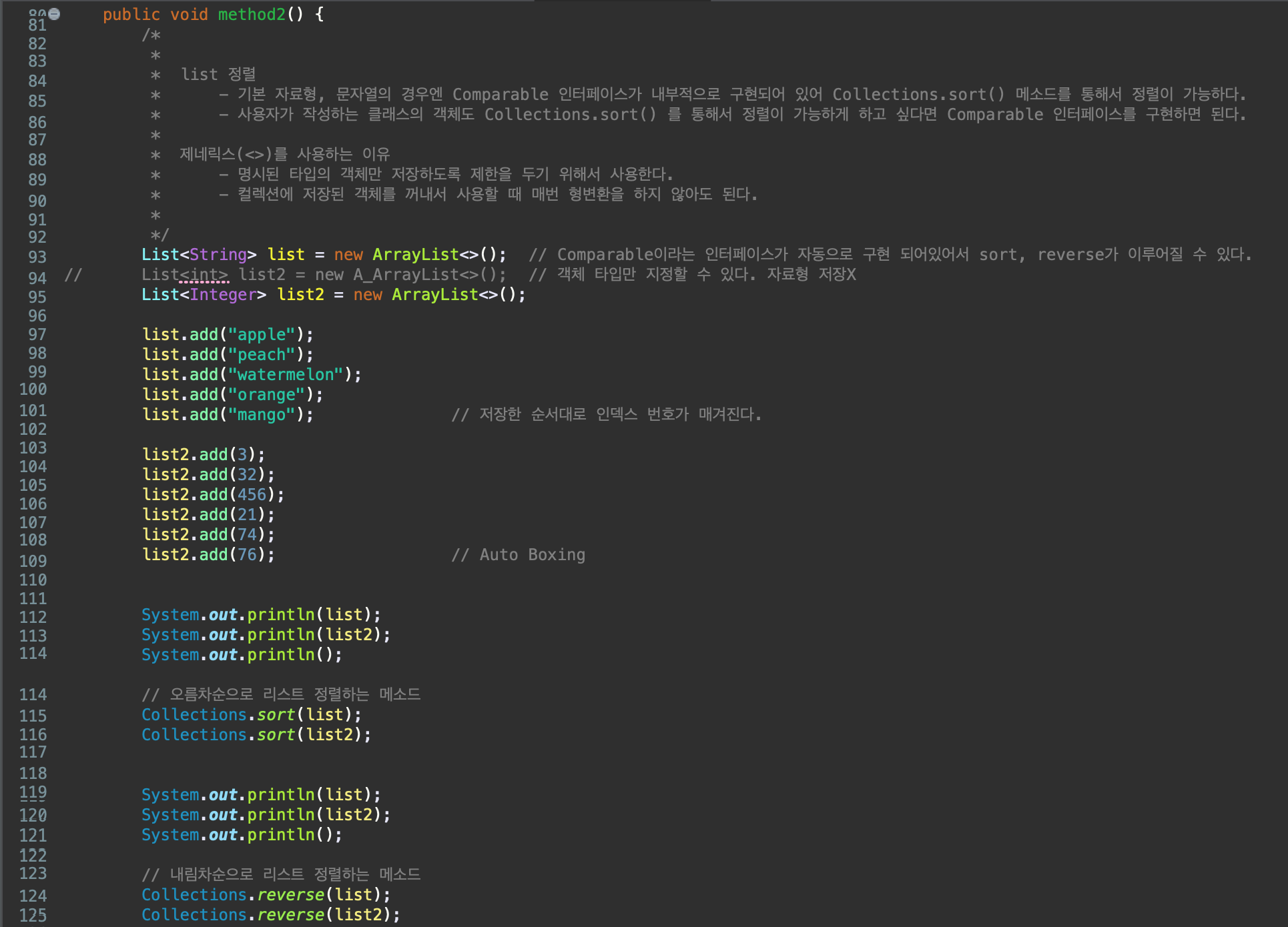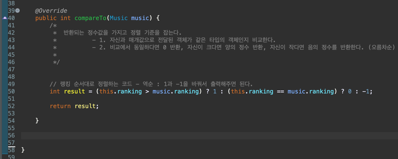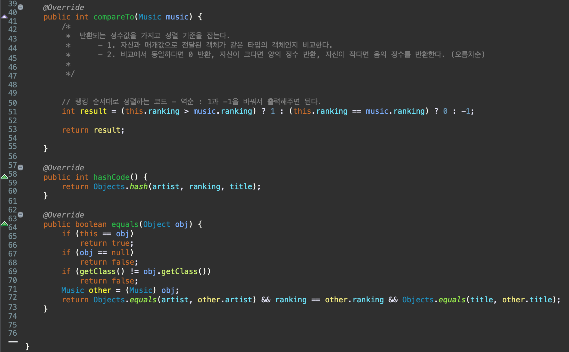 -> 또 다른 방법으로 숫자(Integer, Double), 문자열(String) 타입을 제외한 Comparable을 상속 받는 객체인 경우 compareTo() 메소드의 오버라이딩 부분을 내림차순으로 변경한다.