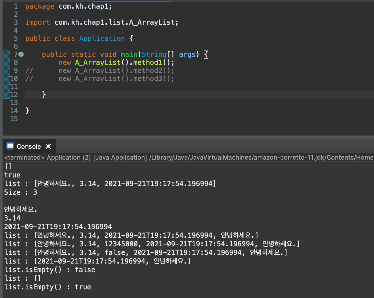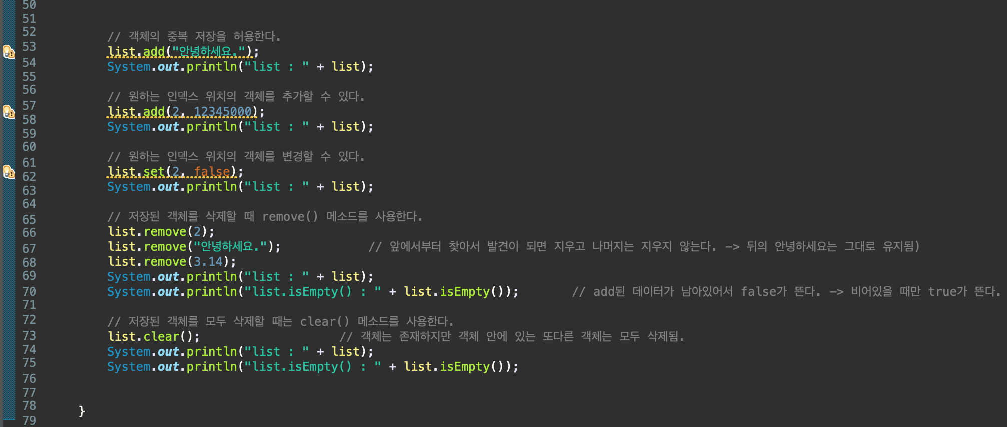 | isEmpty() | boolean | 컬렉션이 비어 있는지 조사 | |