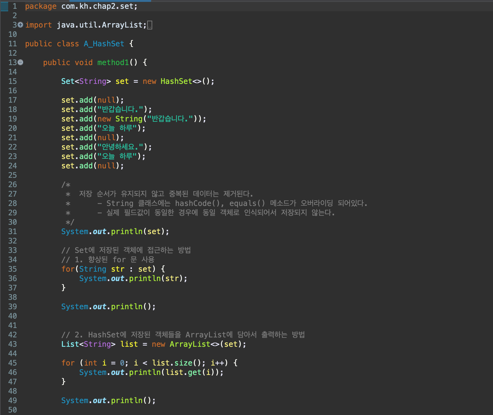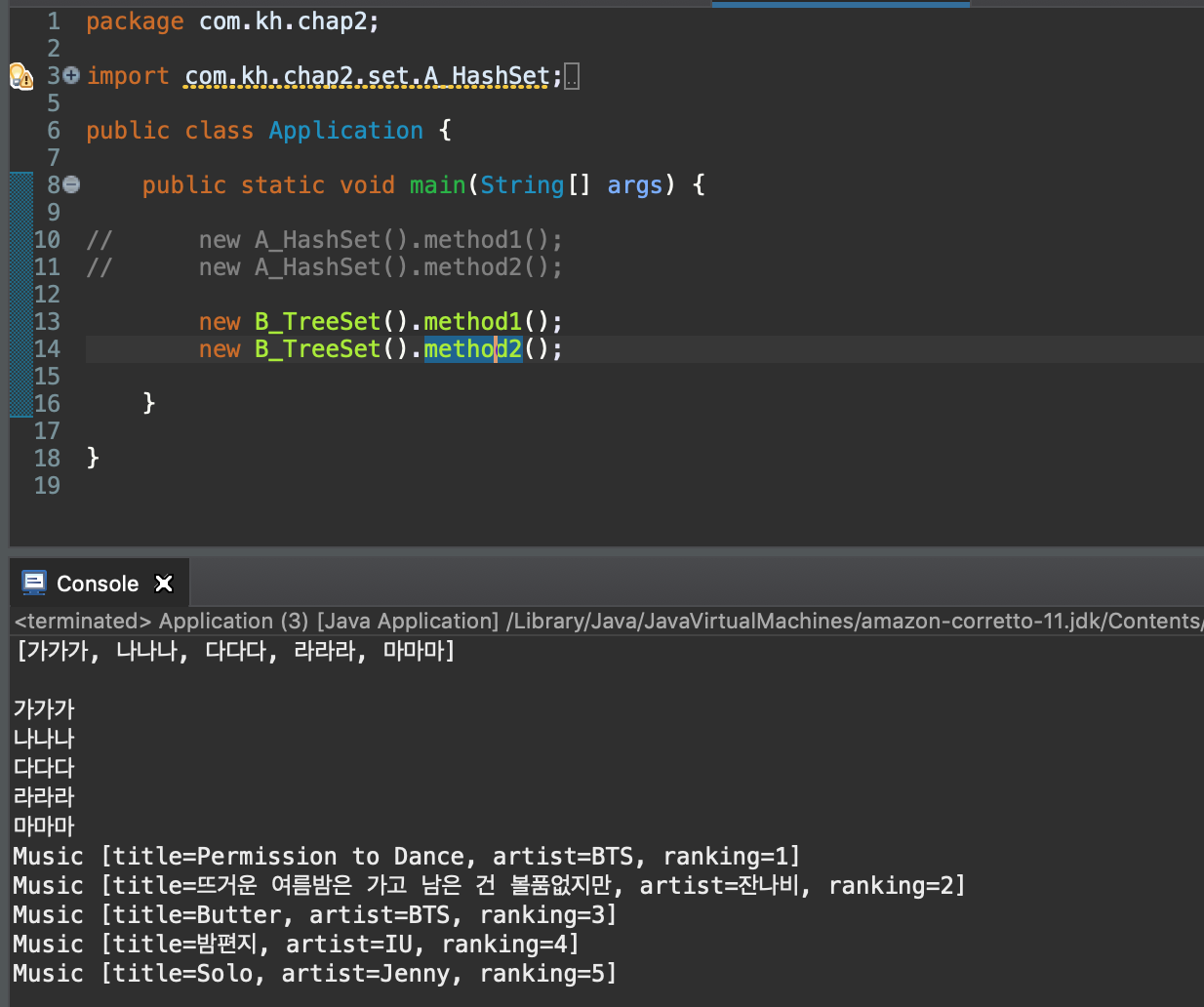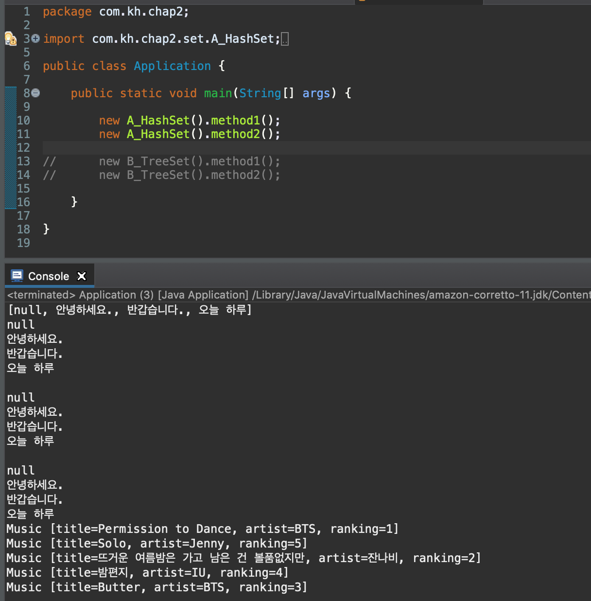 > 컬렉션(Collection) - 셋(Set)코드 실습과 출력 결과