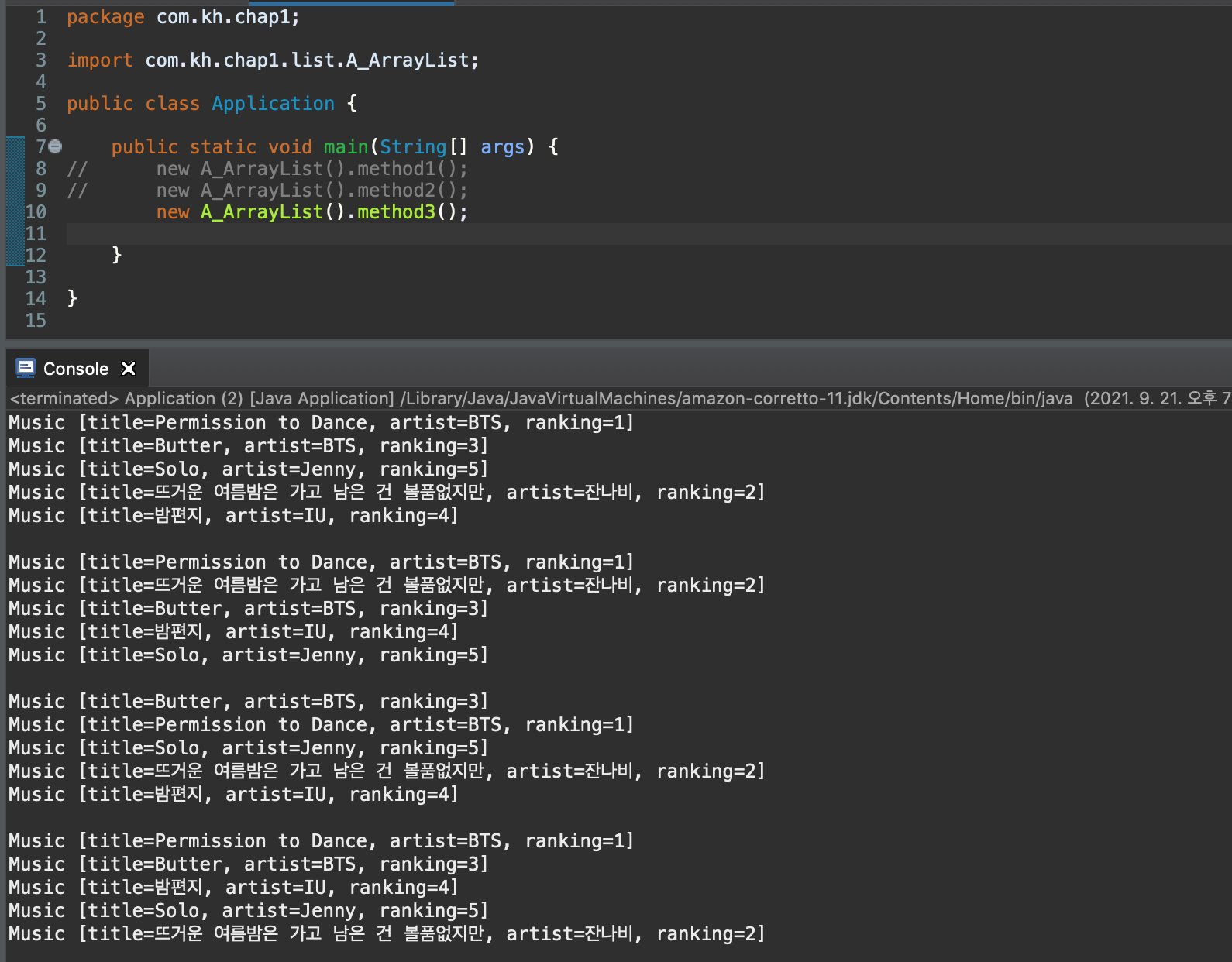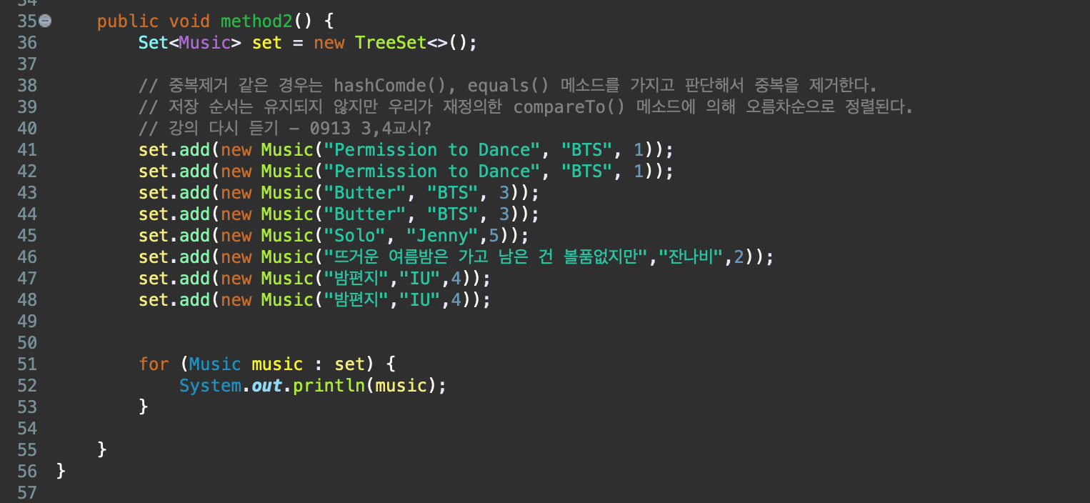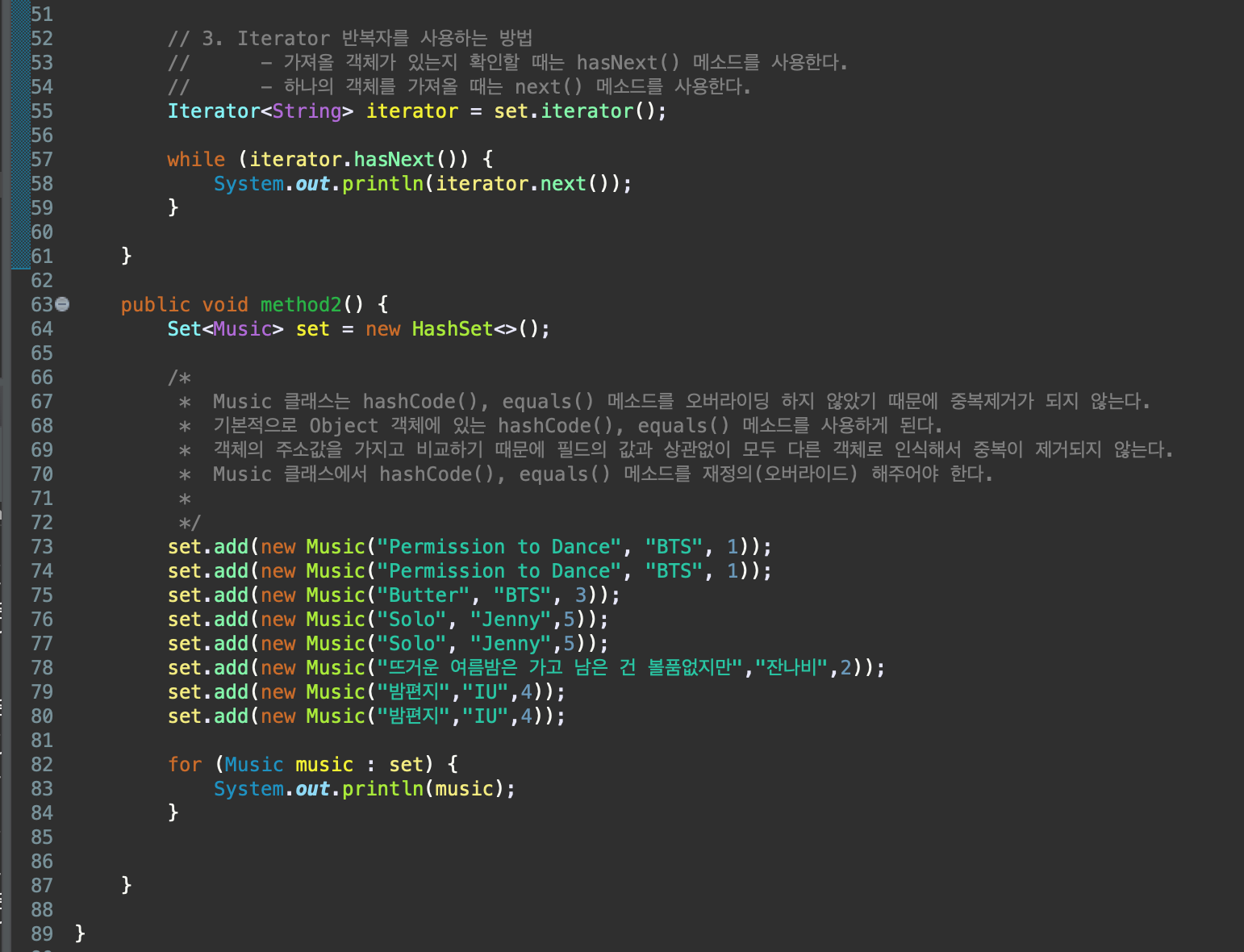 > 컬렉션(Collection) - 셋(Set)코드 실습과 출력 결과