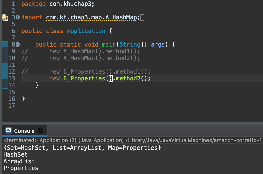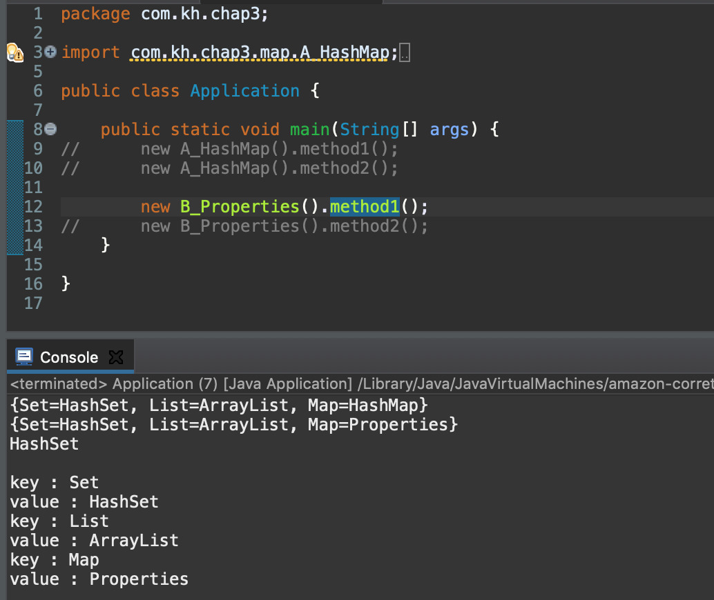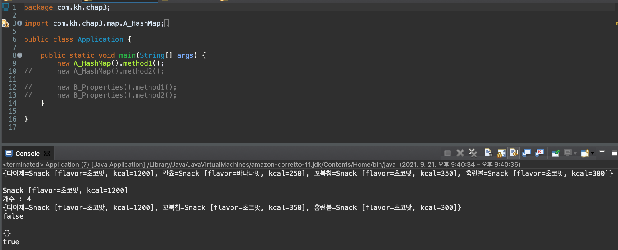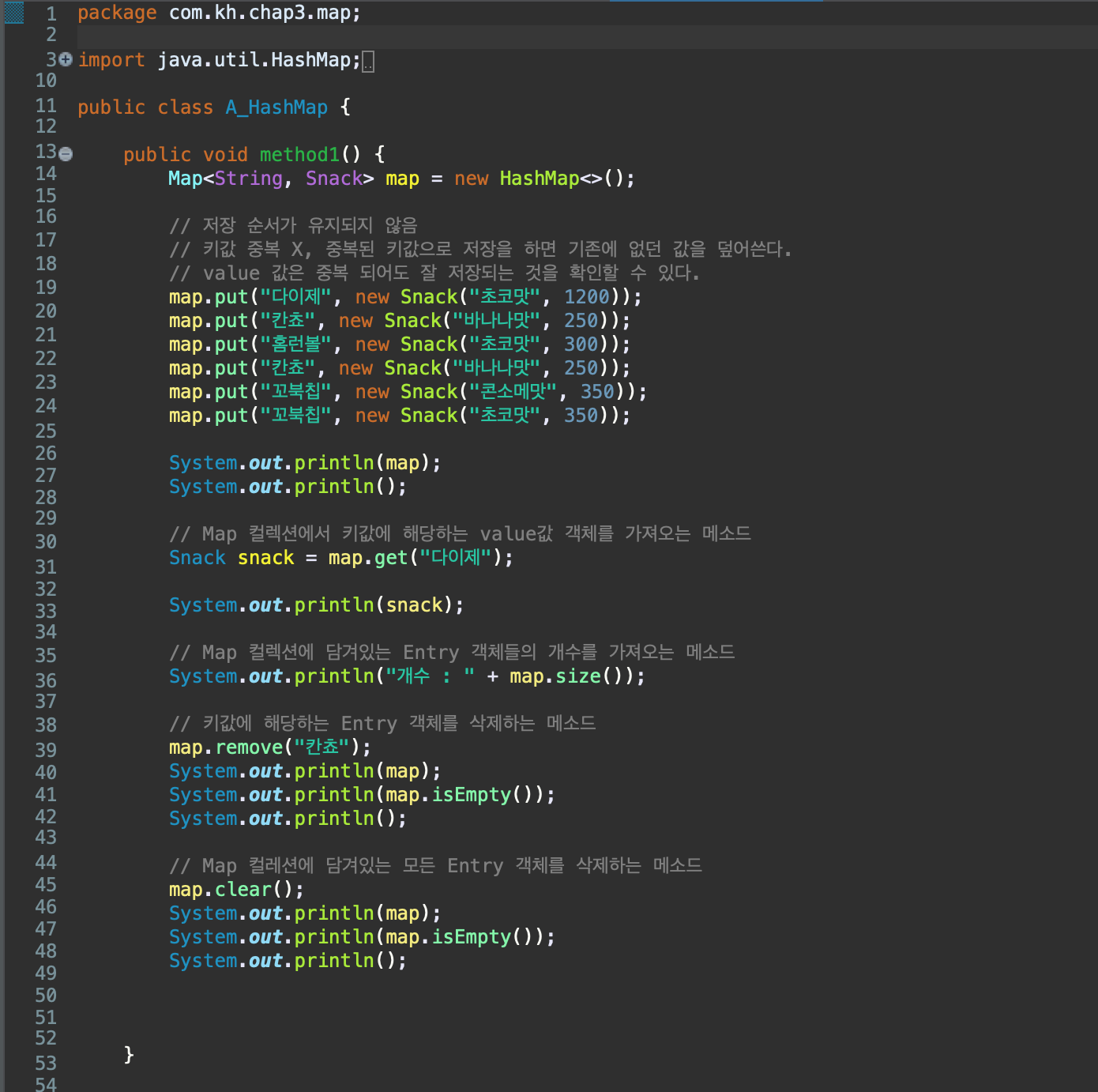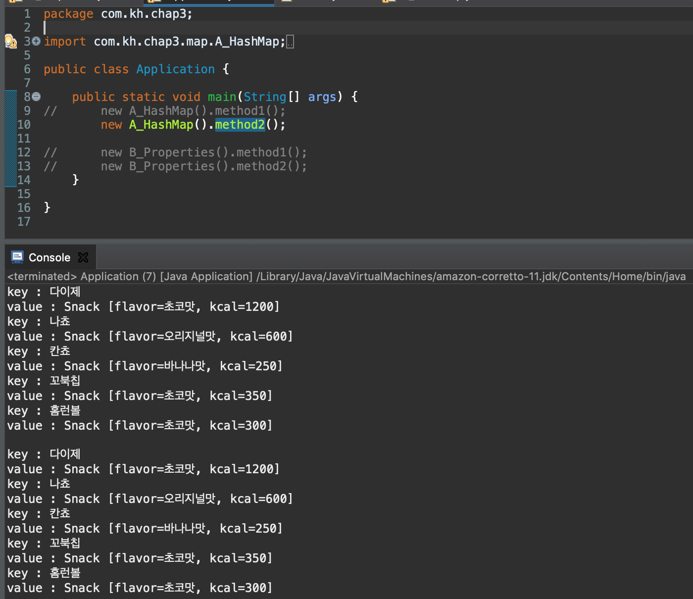 > 컬렉션(Collection) - 맵(Map)코드 실습과 출력 결과