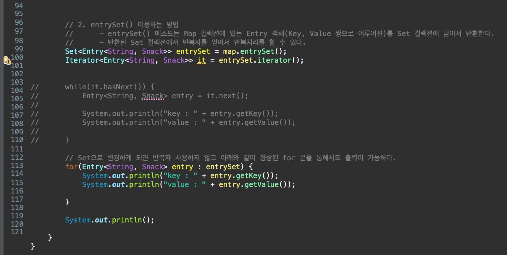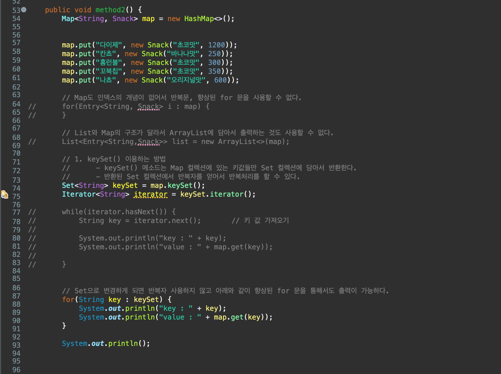 -> Map의 경우 Set 또는 List화 시켜서 iterator()를 사용해야 한다.