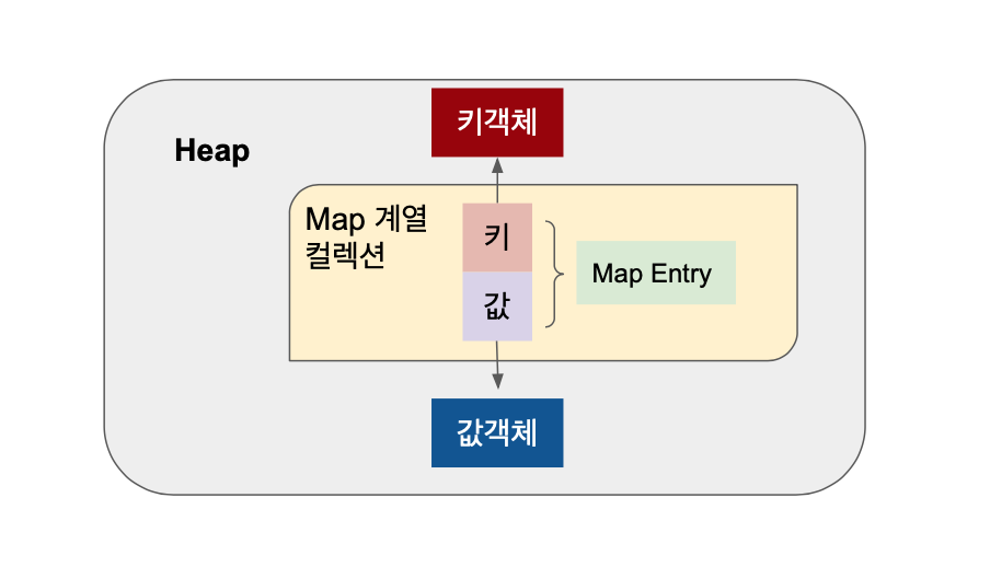 -> 데이터를 저장할 때 키(key)와 값(value)를 쌍으로 묶는다. 이것을 Entry 객체라고 부른다.