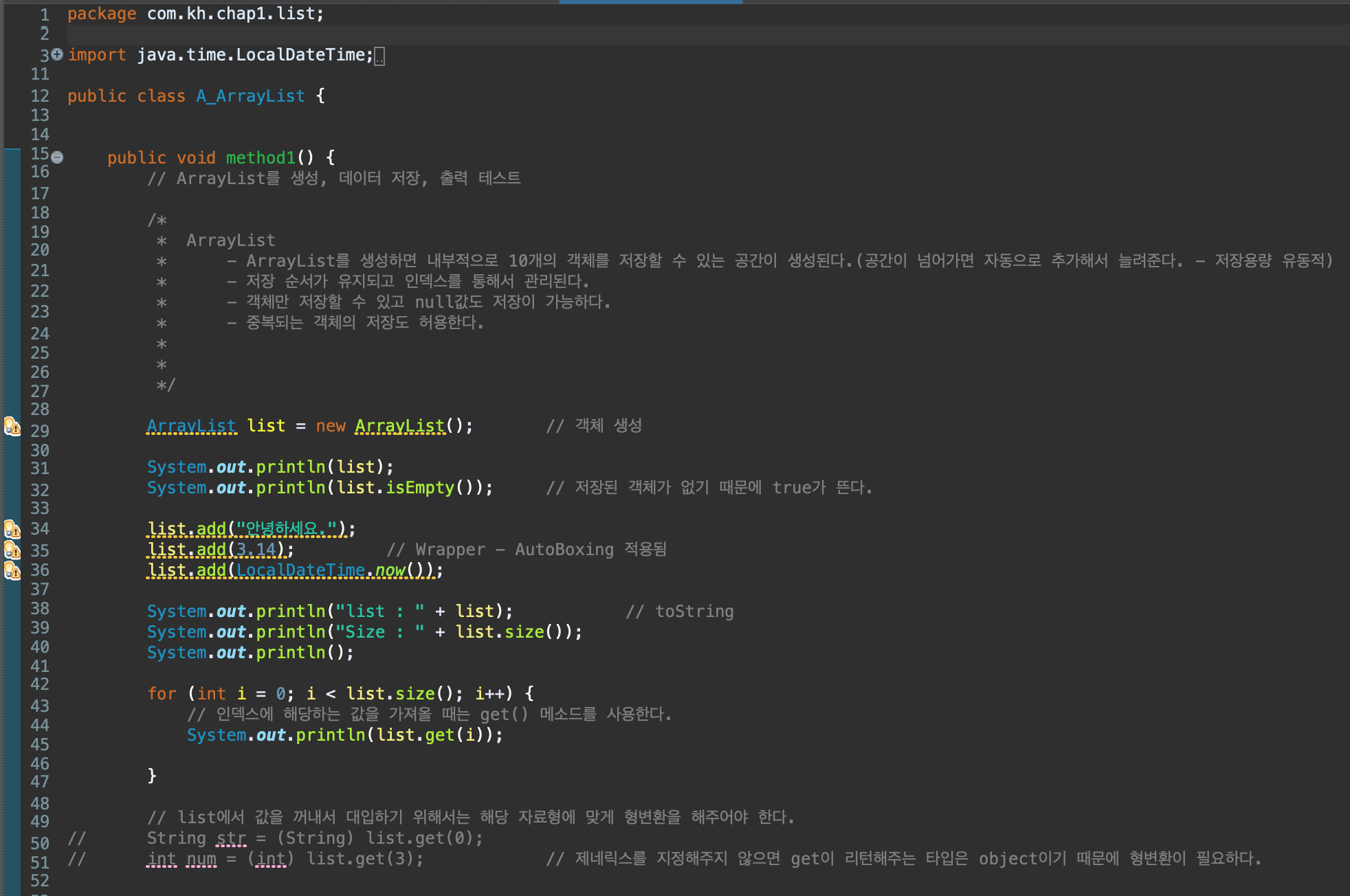 -> 구현 클래스로는 ArrayList와 Vector, LinkedList가 있다.
