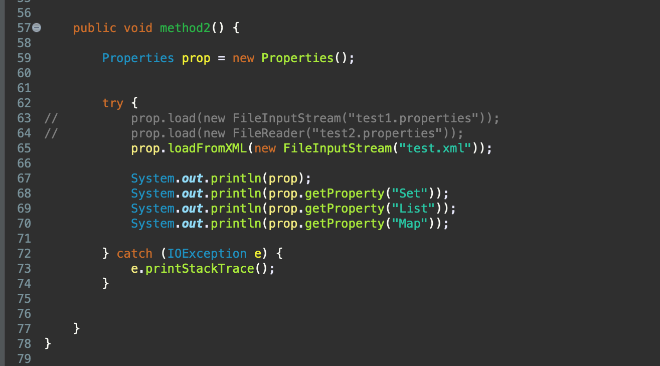 | load(InputStream inStream) | void | 바이트 스트림으로 저장된 파일의 내용을 읽어와서Properties 객체에 저장 | |