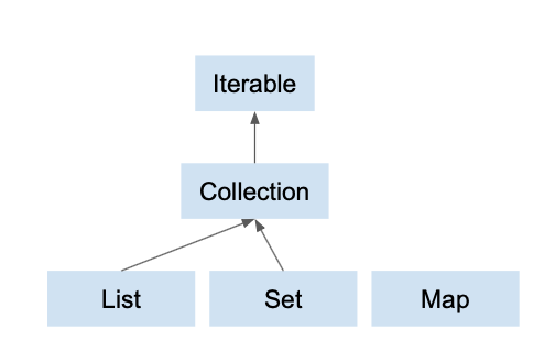-> 왼쪽 그림의 상속 구조 때문에 iterator() 메소드는 List와 Set 계열에서만 사용된다