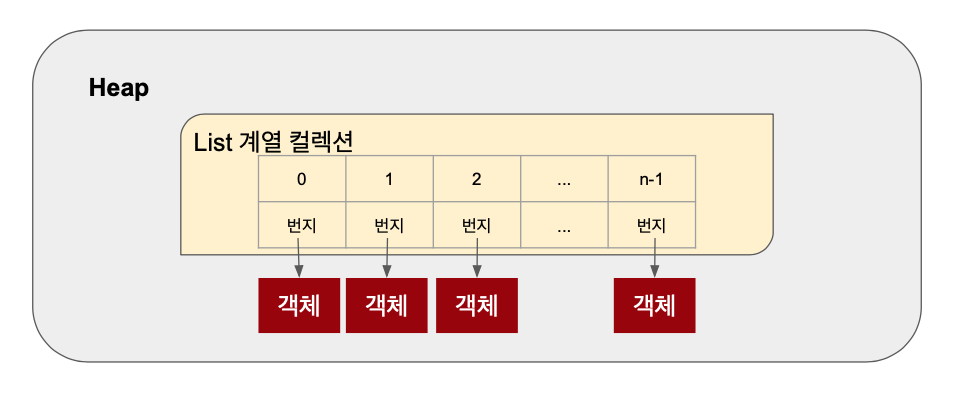 -> 배열처럼 인덱스로 관리하면서 객체들만 저장할 수 있다.