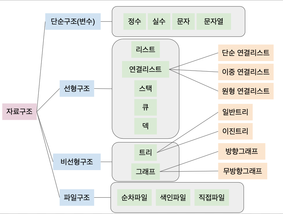 -> 데이터(자료)를 메모리에서 구조적으로 처리하는 방법 론이다.