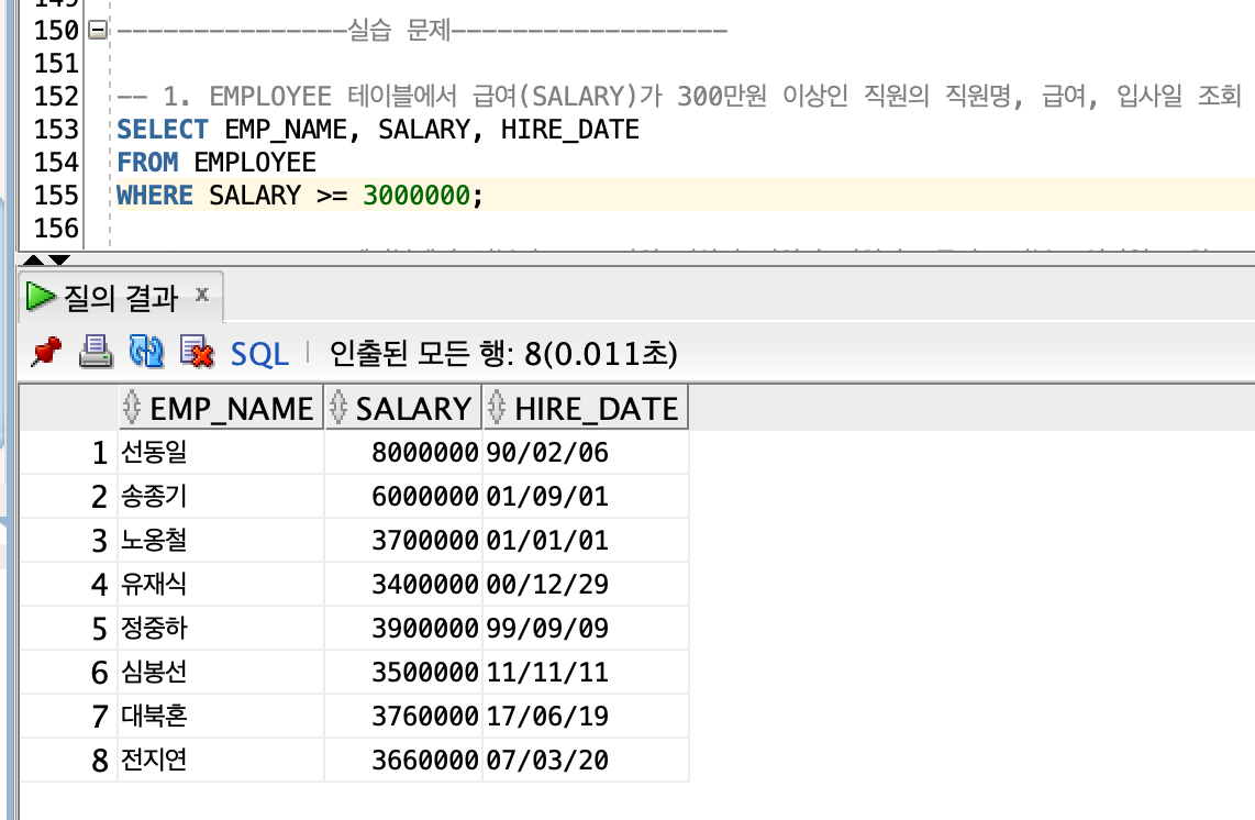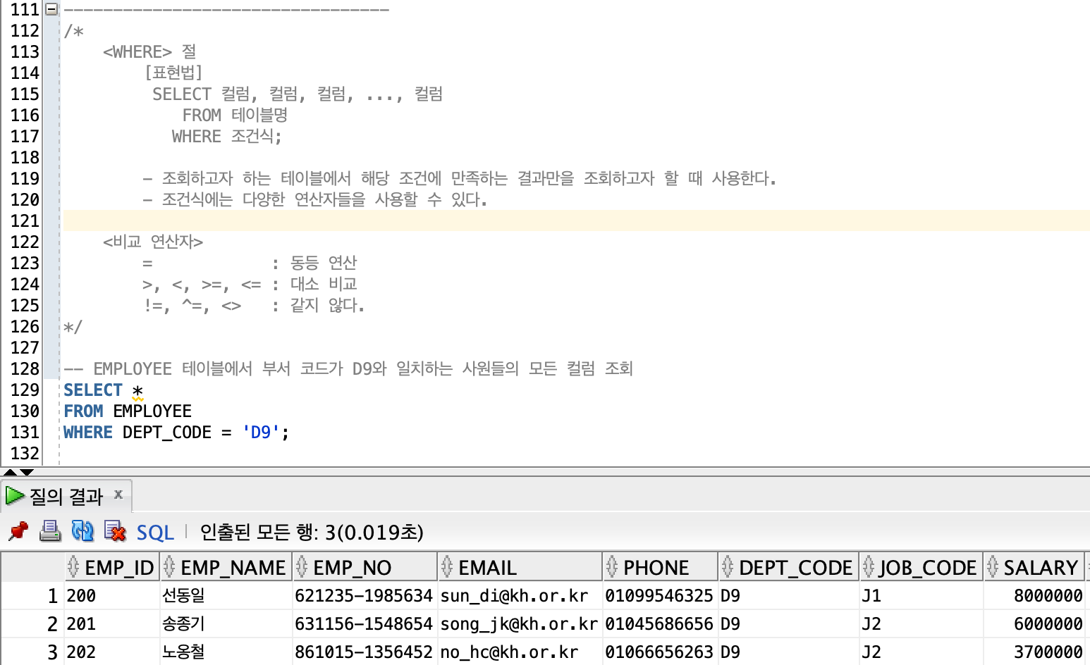 > SELECT 예시 | WHERE 절 | 비교연산자