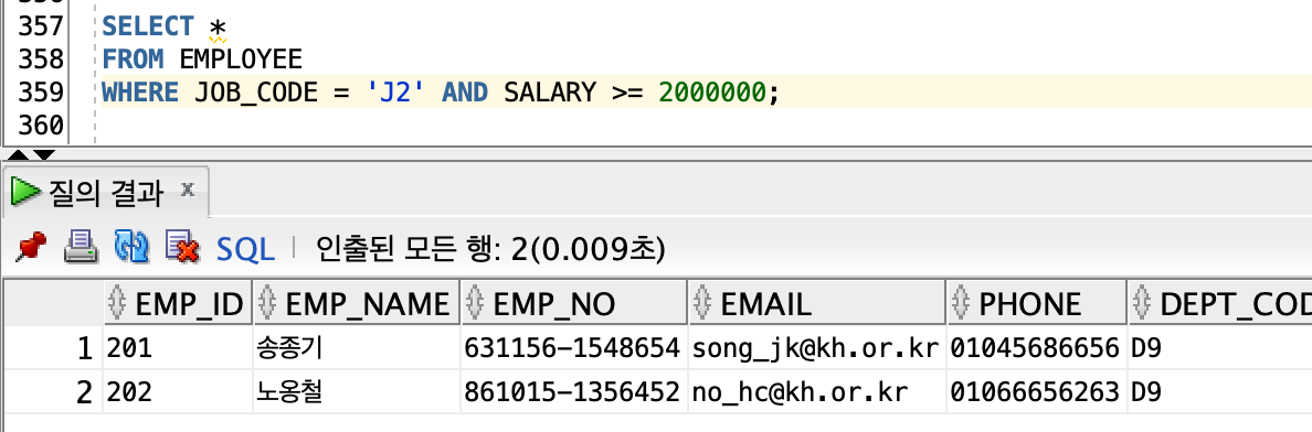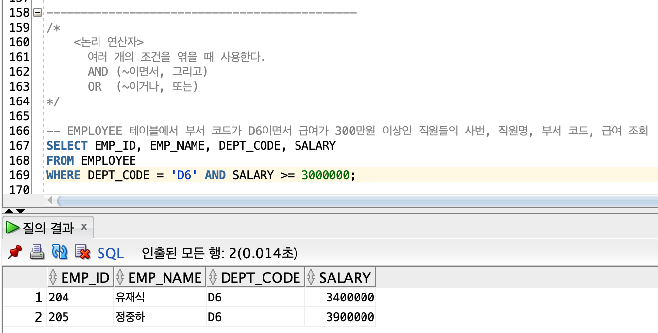 -> 여러 개 조건 작성 시 AND/OR 사용