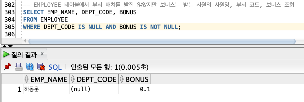 > 비교 연산자 | IS NULL | IS NOT NULL