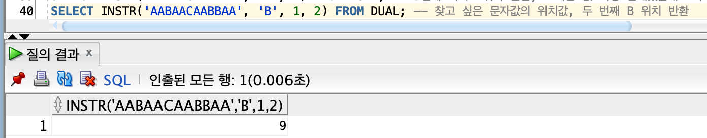| INSTR | 특정 문자의 위치 반환 | ||