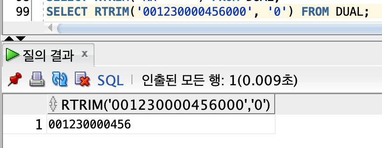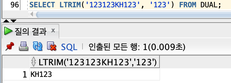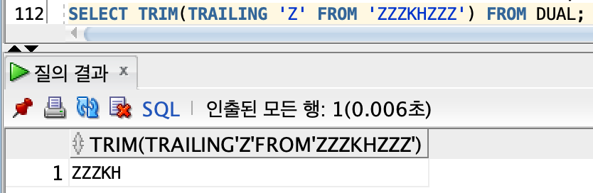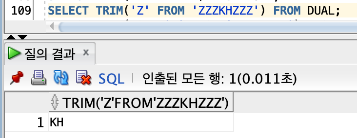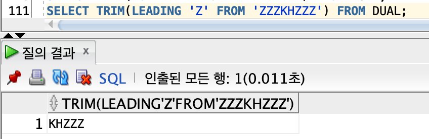 -> 표현식 : TRIM( CHAR FROM STRING)