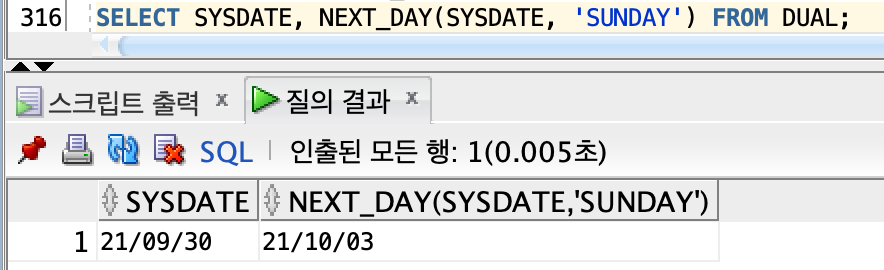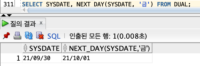 > 날짜 처리 함수 | NEXT_DAY