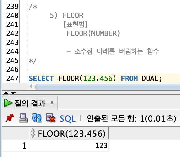 -> 표현식 : FLOOR(NUMBER)