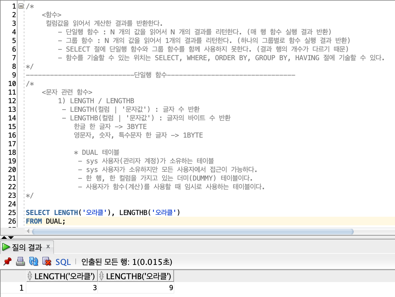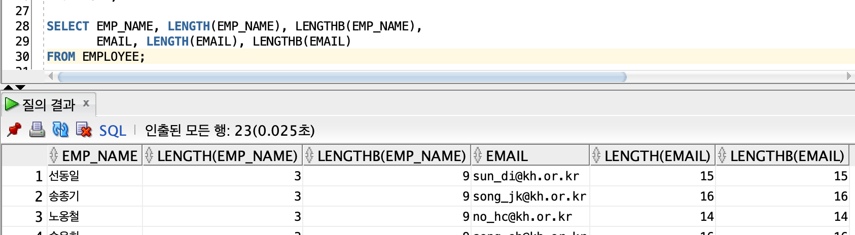 > 문자 처리 함수 | LENGTHB
