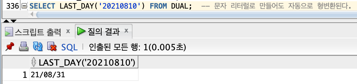 | LAST_DAY | 해당 달의 마지막 날짜 반환 | ||