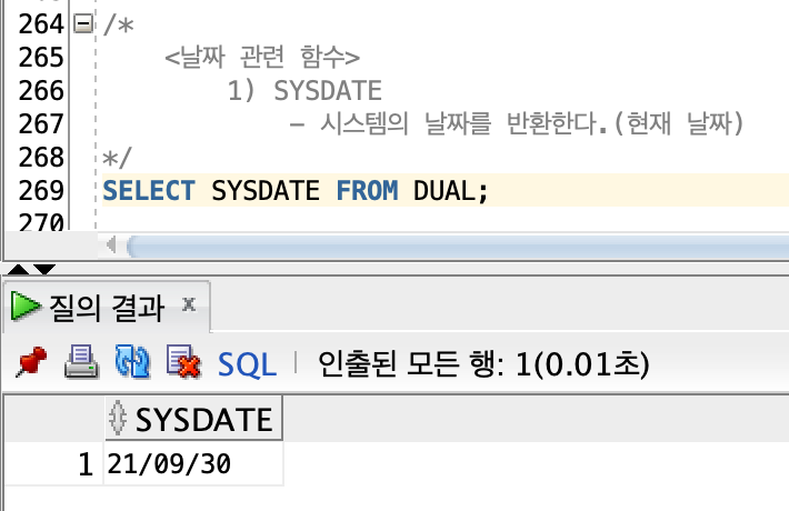 | SYSDATE | DATE | 시스템에 저장된 현재 날짜 반환 | |