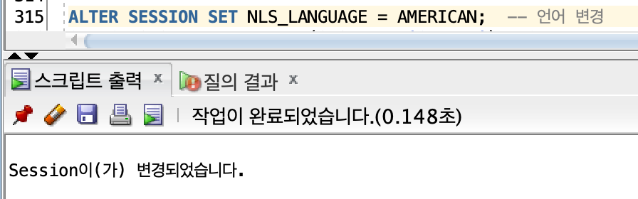 -> 언어 변경 후 같은 쿼리문 작성 시 오류가 나지 않는 걸 확인할 수있었다.