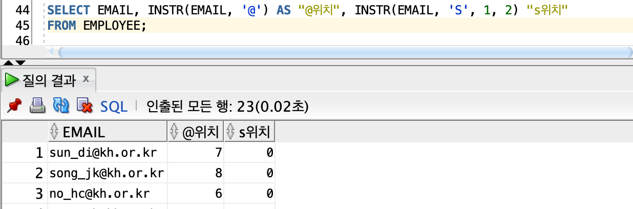 > 문자 처리 함수 | INSTR