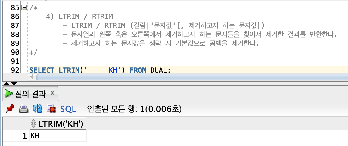 > 문자 처리 함수 | LTRIM / RTRIM