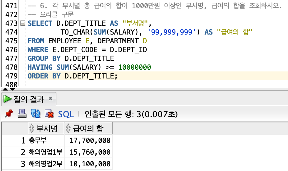 -> WHERE SALARY < ROUND로 해도 정상적으로 조회가 가능하다.