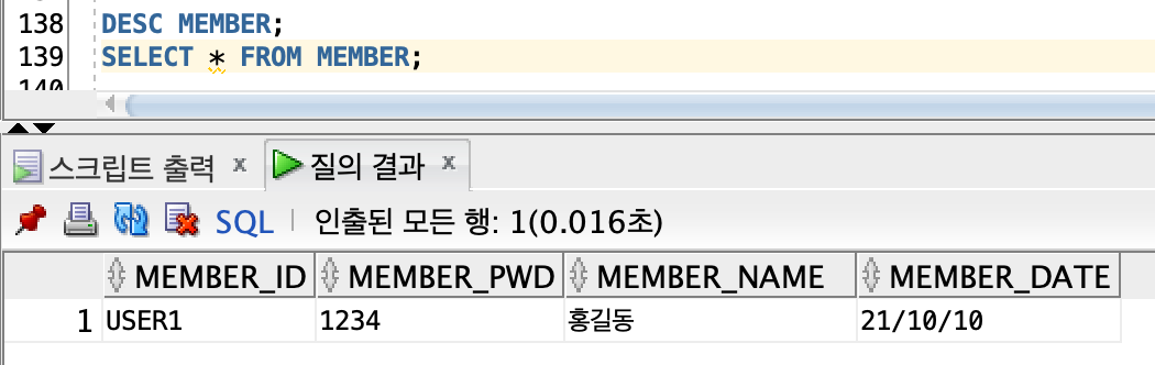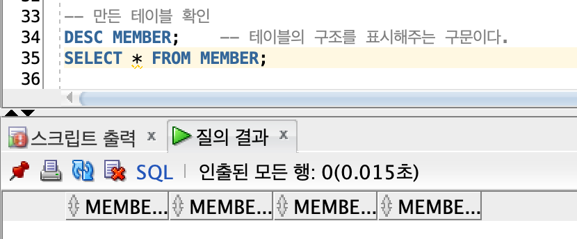 -> DESC MEMBER; -> 테이블의 구조를 표시해주는 구문