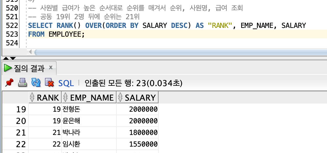 -> 공동 19위 두 명 뒤에 바로 순위가 21위인 것을 확인할 수 있다.