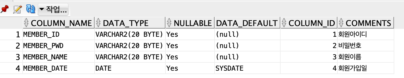 -> 표현식 : COMMENT ON COLUMN 테이블명.컬럼명 IS '주석 내용';