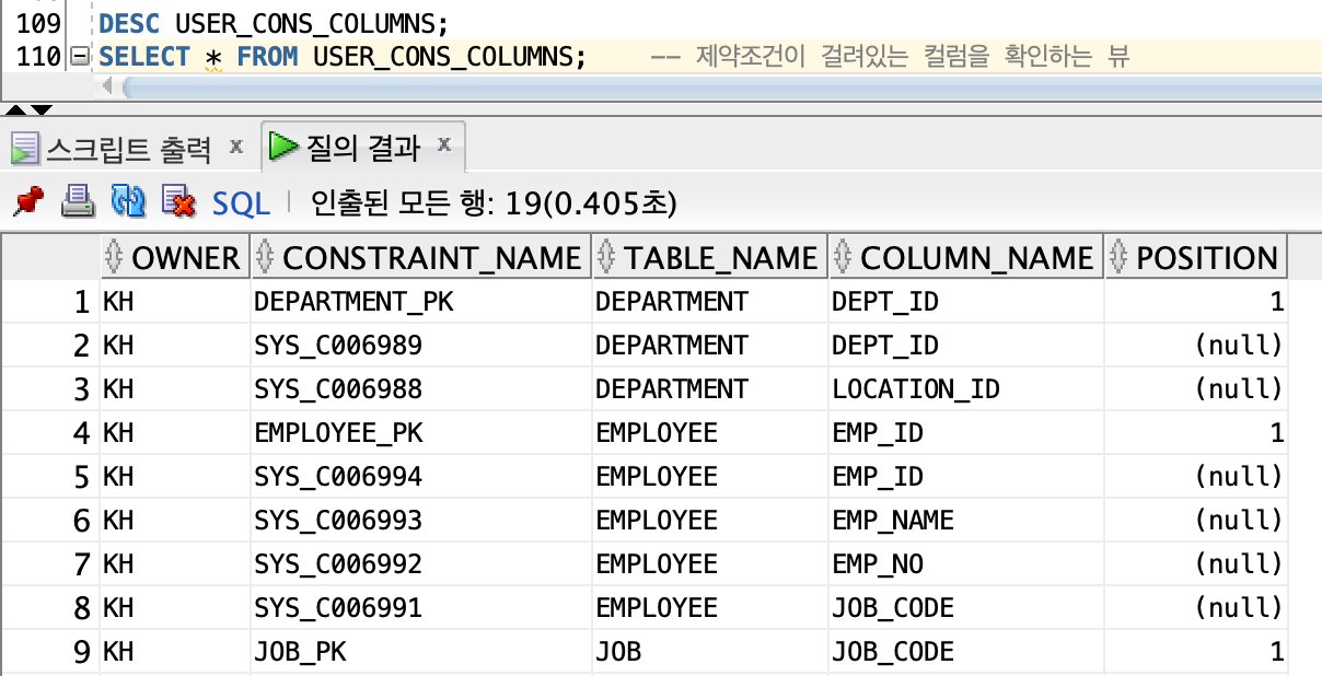 -> 제약조건이 걸려있는 컬럼을 확인하는 뷰