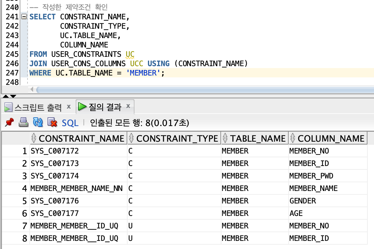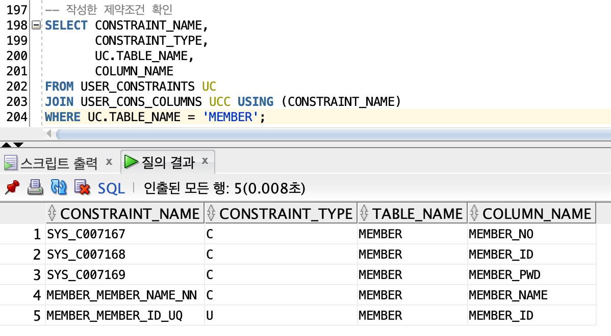 -> 사용자가 작성한 제약조건을 확인하는 뷰