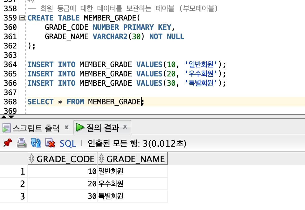 -> 기존 MEMBER 테이블은 값에 NULL이 있어도 삽입 가능 (NOT NULL 제약조건 전)