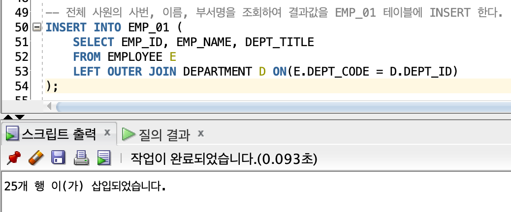 -> 서브 쿼리의 결과 값을 통해 INSERT하는 두 가지 방법