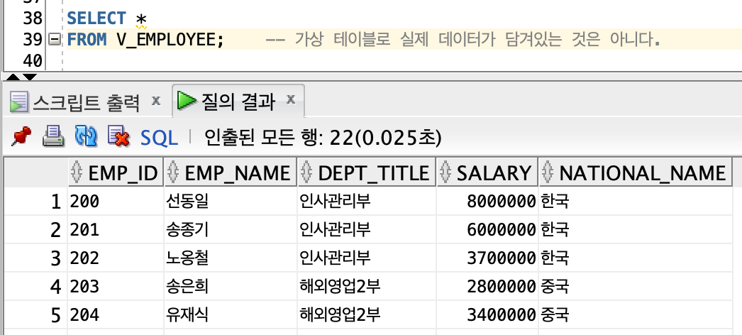 -> VIEW 테이블은 가상 테이블이기 때문에 실제 데이터가 담겨있는 것은 아니다.