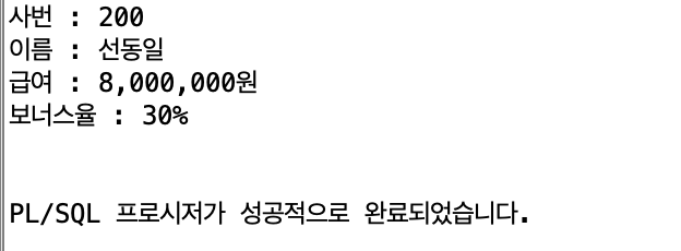 DBMS_OUTPUT.PUT_LINE('해당 사원의 급여 등급은 ' || GRADE || '입니다.');
