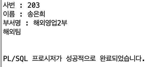 DBMS_OUTPUT.PUT_LINE('부서명 : ' || DNAME);