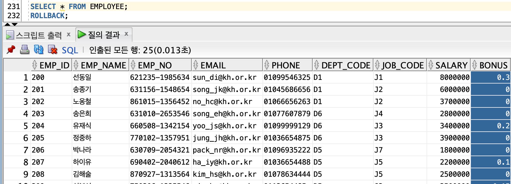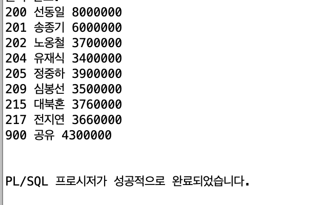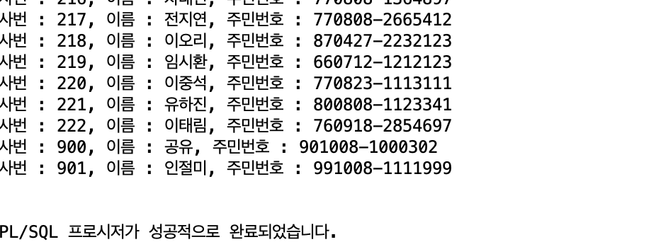 -> FOR IN LOOP를 이용하면 LOOP 반복 시 자동으로 CURSOR를 OPEN하고 행 인출(FETCH) LOOP 종료 시 자동으로 CURSOR CLOSE된다.
