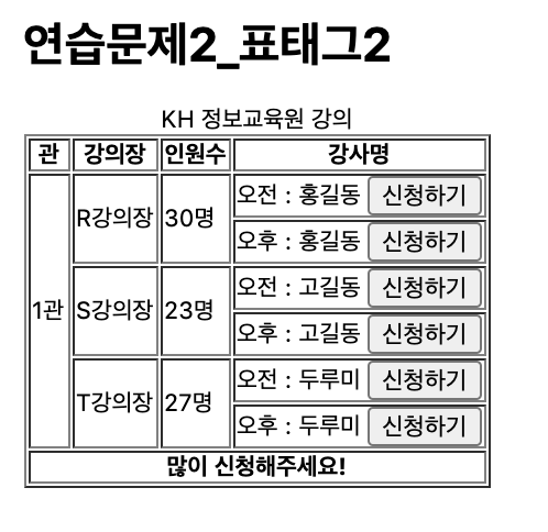 <h1>연습문제2_표 태그 1</h1>
