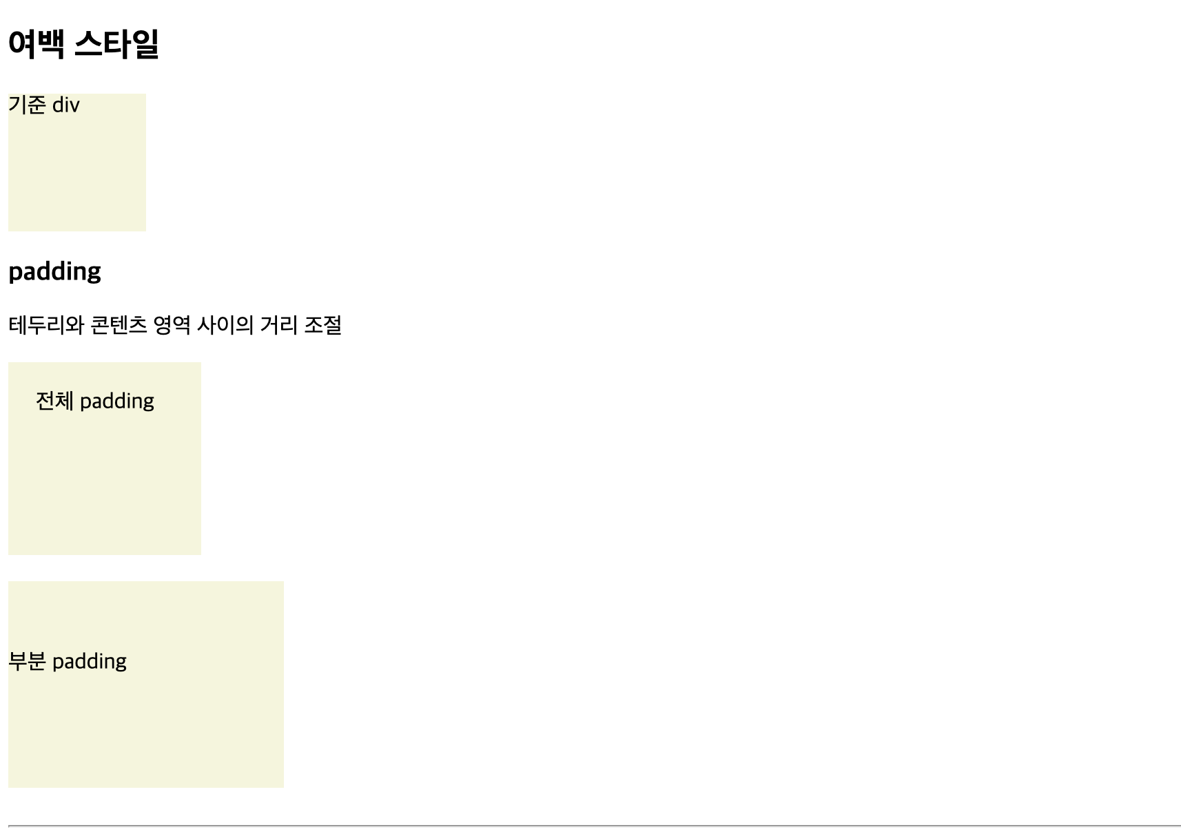 -> padding : 테두리와 컨텐츠 영역 사이 거리 조절 속성