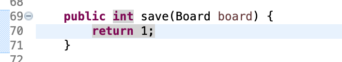 > BoardService에 생성된 save(Board board) 메소드의 리턴값을 임의로 정수값 설정 후(0이상) 테스트 진행해보기