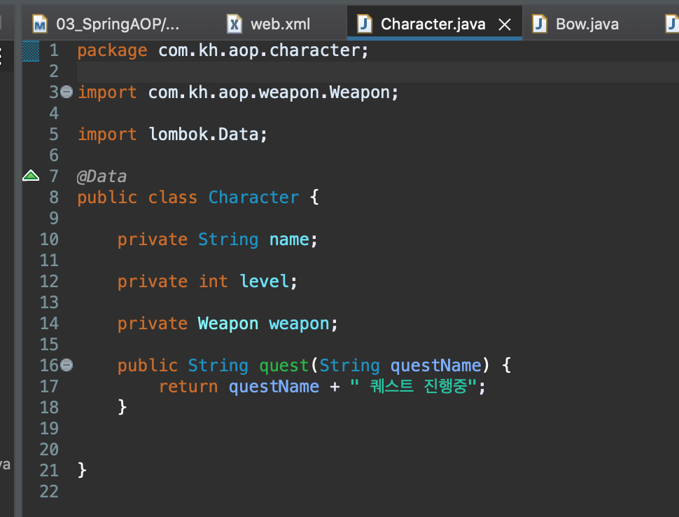 <bean id="characterAspect" class="com.kh.aop.aspect.CharacterAspect"/>